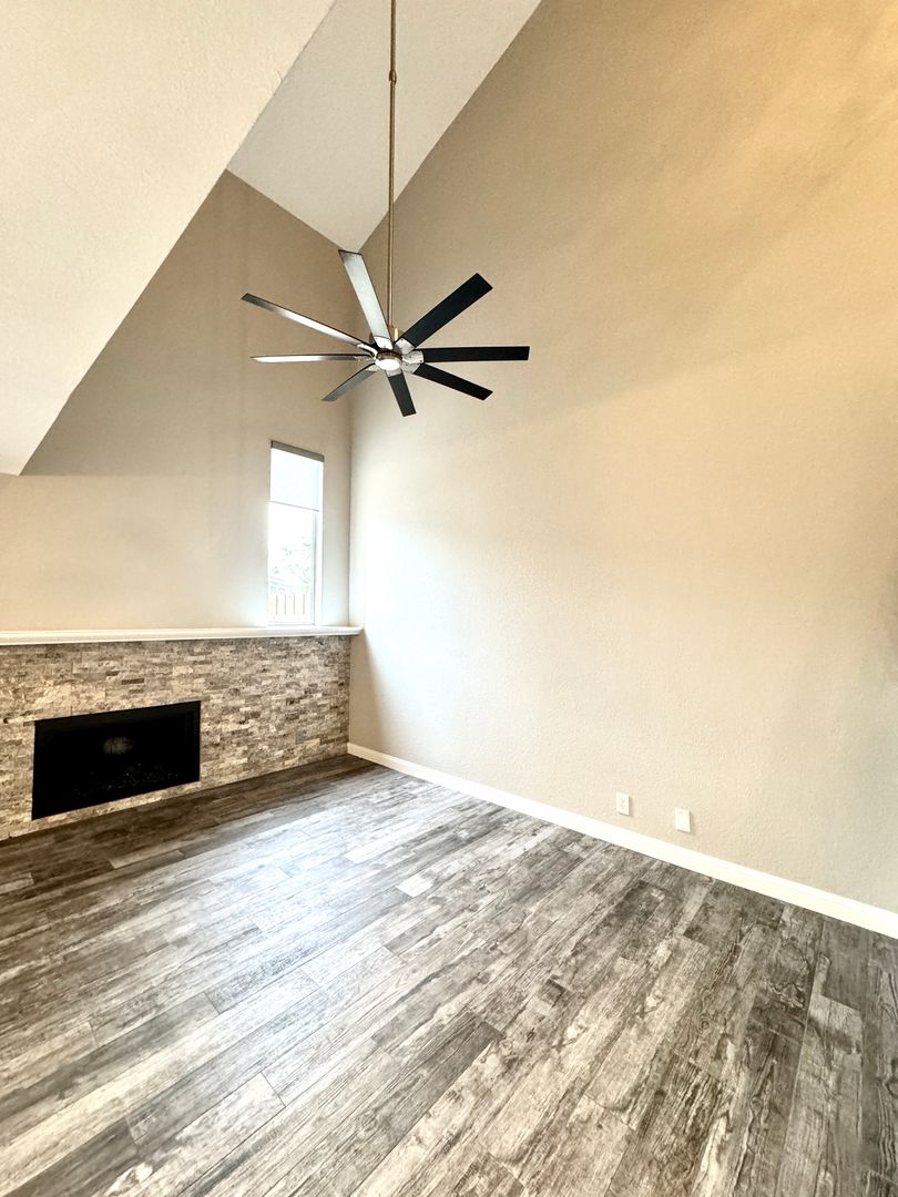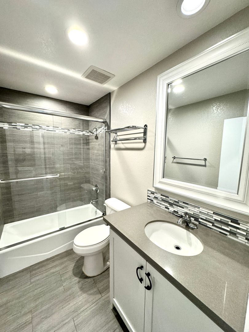 Step inside to a spacious open-concept living area ideal for relaxing evenings or entertaining guests. The remodeled modern kitchen features elegant quartz countertops, shaker-style cabinetry, stainless steel appliances, and a convenient breakfast bar that seamlessly connects to the main living space.