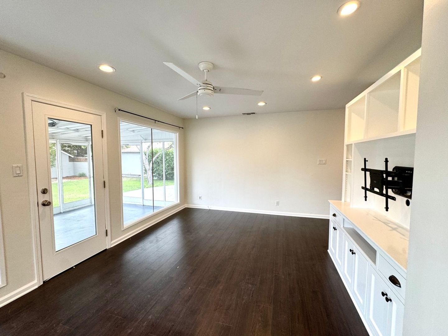 This beautifully updated property offers the perfect blend of comfort, style, and convenience. With newer paint and sleek laminate/tile flooring throughout, the home features an updated kitchen and bathroom, ready for modern living. The spacious living room is highlighted by a stunning built-in, adding both elegance and extra storage. Ceiling fans throughout keep the home cool and comfortable, and dual-pane windows enhance energy efficiency and quiet enjoyment.