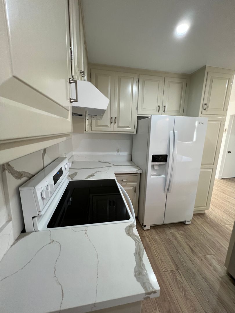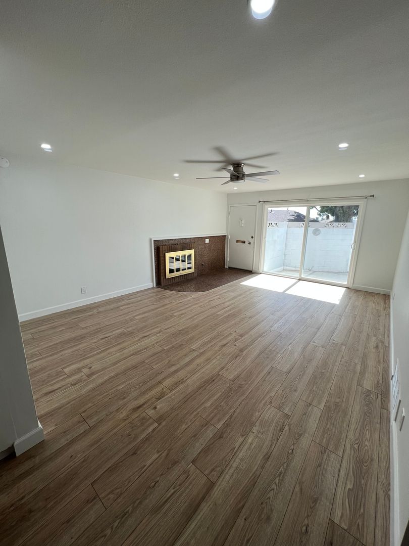 Step inside to discover fresh interior paint, brand-new vinyl flooring throughout, new dual-pane windows, and a fully updated kitchen featuring quartz countertops and new appliances. The functional layout includes spacious bedrooms, nice floor plan with oversized living room w/ fireplace, well-appointed bathrooms, and convenient in-unit laundry hookups.