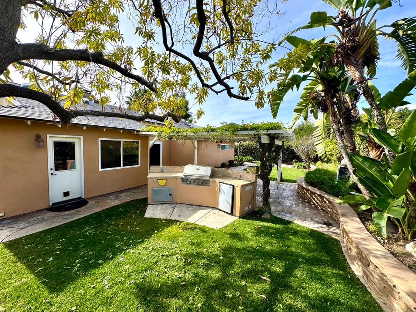Oversized backyard with built-in barbecue